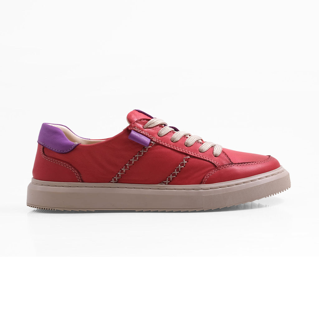A super-soft leather sneaker with an added touch of colour and charming stitching detail. With a deeply cushioned footbed and non-slip, flexible sole - it's your everyday comfy sneaker! Handmade in Europe.